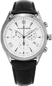 Alexander Statesman Chieftain Wrist Watch For Men - Black Leather Analog Swiss Watch - Stainless Steel Plated Yellow Gold Watch - Silver Dial Day Date Month Mens Chronograph Watch A101-07